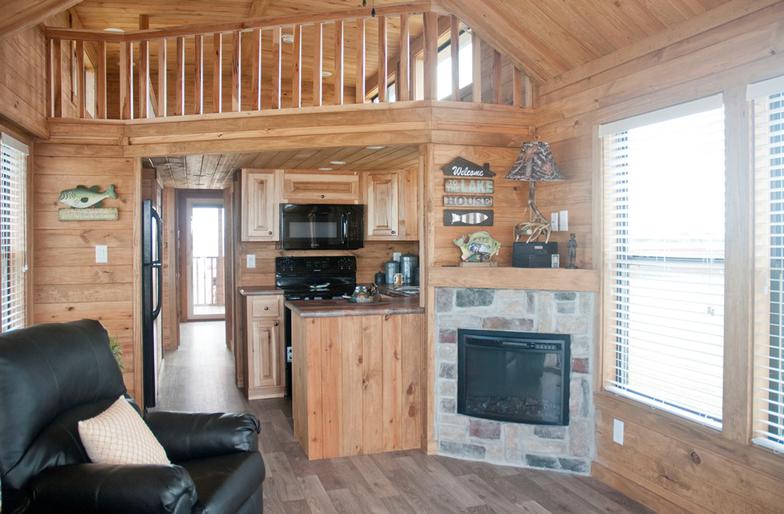 An interior picture of a Lakeview P-563SL model by Platinum Cottages and RRC Athens. This model is currently on display in Athens at Recreational Resort Cottages.